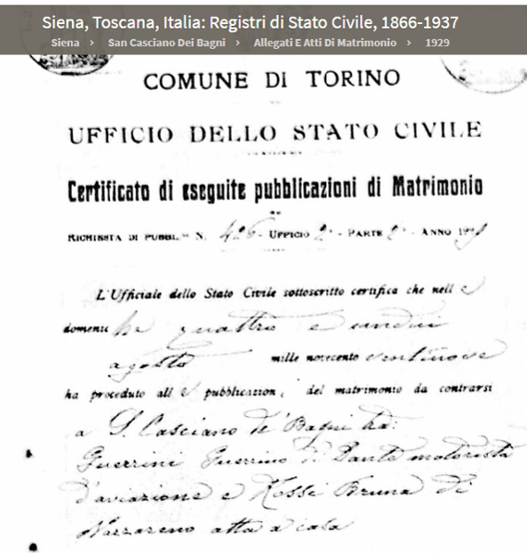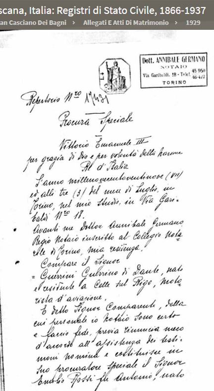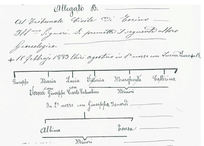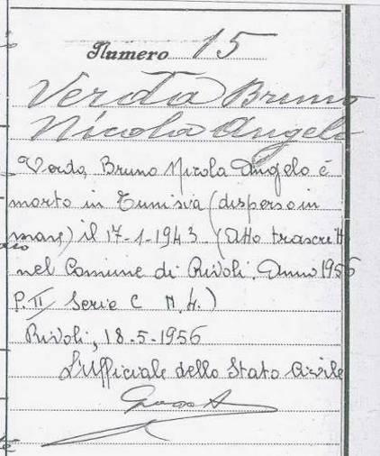 Dopo le prime indagini presso gli uffici del Cimitero Generale di Torino, si individuò l'anno di morte e, di conseguenza presso gli uffici dello Stato Civile dell'Anagrafe di Torino, si riuscì ad ottenere il certificato di morte dal quale si ricavarono le date ed il luogo di nascita preciso e con essi, di primaria importanza per il procedere delle indagini, il nome di battesimo del padre: tale Andrea Verda; emersero così anche le generalità complete di sua moglie: Calzia Catterina.