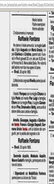 5) Da LA STAMPA del 20-04-199 recuperato il necrologio riferito a Raffaele Fontana: