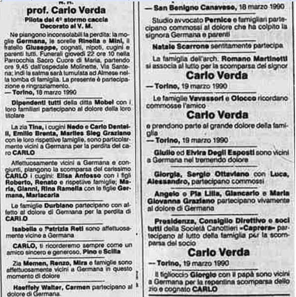 7) Da LA STAMPA del 20-3-1990 pag.13 recuperato il necrologio riferito a Carlo Verda: