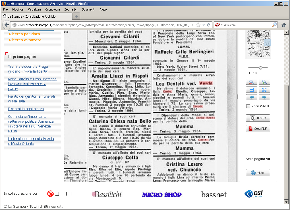 4) Da LA STAMPA recuperato il necrologio riferito a Lea Dentelli: