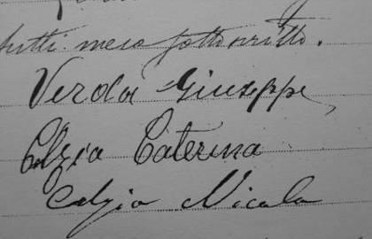 Accertato che il luogo di origine era il paese di Villaviani in provincia di Imperia, in un sopralluogo effettuato nelle vacanze pasquali del 1993, quasi per caso, si ebbe a conoscere una pronipote di Giuseppe Matteo di nome Caterina Calzia detta "Nin"; emerse che era figlia di Barbara Verda a sua volta figlia di Domenico Verda fratello di Giuseppe Matteo. Questa simpatica ed arzilla signora con l'invidiabile età di 93 anni ricordava ancora fatti ed aneddoti di rilevante importanza per il procedere delle mie ricerche. Morì qualche anno dopo e ne serbo un caro ricordo.