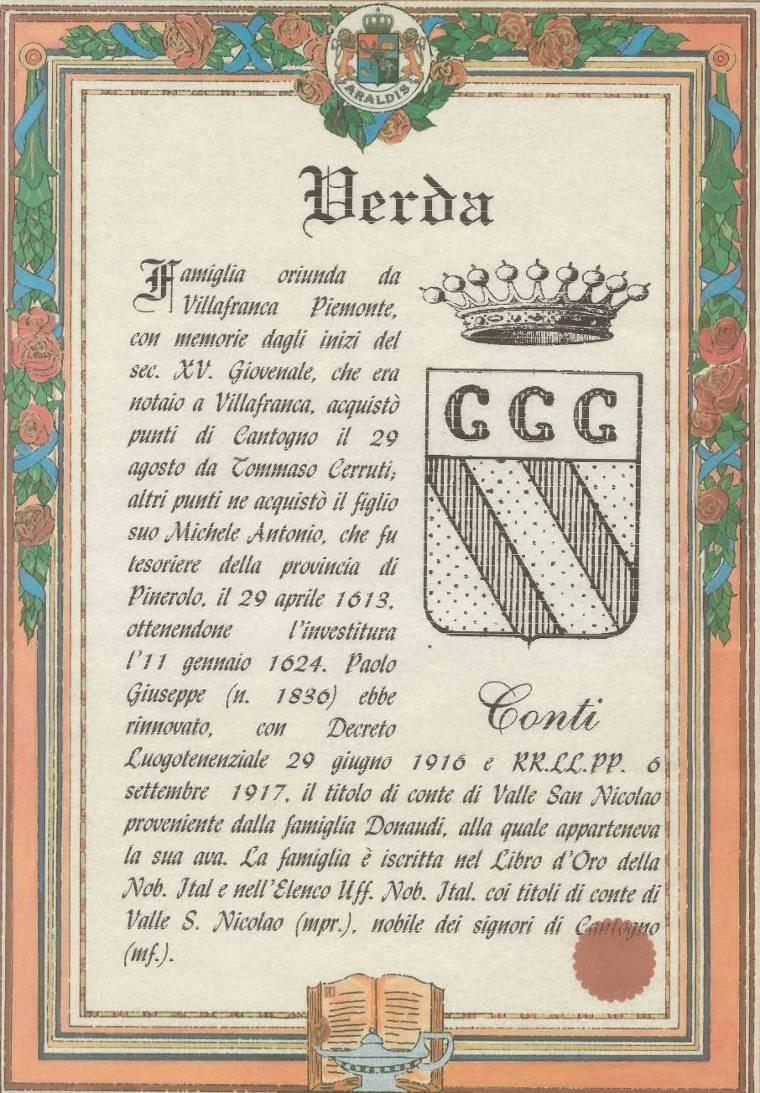 Le riproduzioni fotografiche appena esposte derivano da una coppia di quadri ad olio di forma ovale di circa 40 cm di altezza per 30 di larghezza che Caterina Verda (detta Rinella) e sorella di Giuseppe Verda (nonno dei soggetti base di questa ricerca) donarono al sottoscritto Gianbruno quando cominciò ad occuparsi di queste ricerche famigliari.