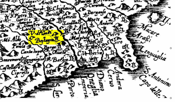 <…di questo esodo rimane tuttora traccia in parecchi paesi del Piemonte specialmente in Torino. È a tale epoca che risalgono i cognomi originari del nostro principato, quali Briatore, Ramoino, Calzia, Semeria, Verda ecc. Tuttora così numerosi nella capitale subalpina, soprattutto nella classe degli esercenti specializzatisi nel commercio degli olii, paste alimentari, pesci conservati ed in generale di quelle derrate comprese appunto lassù sotto la denominazione di "generi di riviera" >>(ved. nota n.2).
