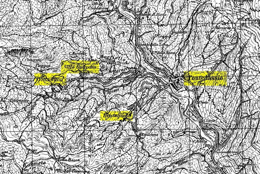 <<.[...] Nel 1700 i nostri oliveti soppiantarono pò per volta prima i seminativi poi i vigneti tantochè la popolazione abbandonò il poco redditivo mestiere del caseificio e si dedicò completamente agli oliveti che rendevano molto per il continuo aumento del prezzo dell'olio e trascuravano il bestiame lattifero. Sul 1800 erano famose le squadre di muli che da Pontedassio e VillaGuardia partivano pel Piemonte carichi di otri, o "pelli" cioè pelli di capra conservate. La nostra valle costituiva la via più breve per trasportare l'olio in Piemonte ed era quindi la più battuta. Varie famiglie di Pontedassio apersero in Torino dei negozi d'olio e diventarono ricche Sovratutto si distinsero i fratelli Gandolfo detti Mori, dei quali due tenevano negozio in Torino, nel centro della vecchia città in Via San Tommaso, per la rivendita, l'altro il più vecchio ed il più abile stava a Pontedassio per la compera degli oli, mestiere assai delicato e difficile. In tale periodo di tempo il commercio si svolgeva alacre ed intenso a Pontedassio ed erano redditizi due mestieri che ora sono scomparsi: il pulitore di truogoli ed il soffiatore delle pelli di capra. La nuova strada carrozzabile aperta da Napoleone e finita nel 1825 apportò nuovi miglioramenti, perché l'olio fu trasportato in seguito in Piemonte sui carri invece che a dorso di mulo. Furono costrutti nuovi frantoi più ampi e potenti sulla strada carrozzabile [...]>>.