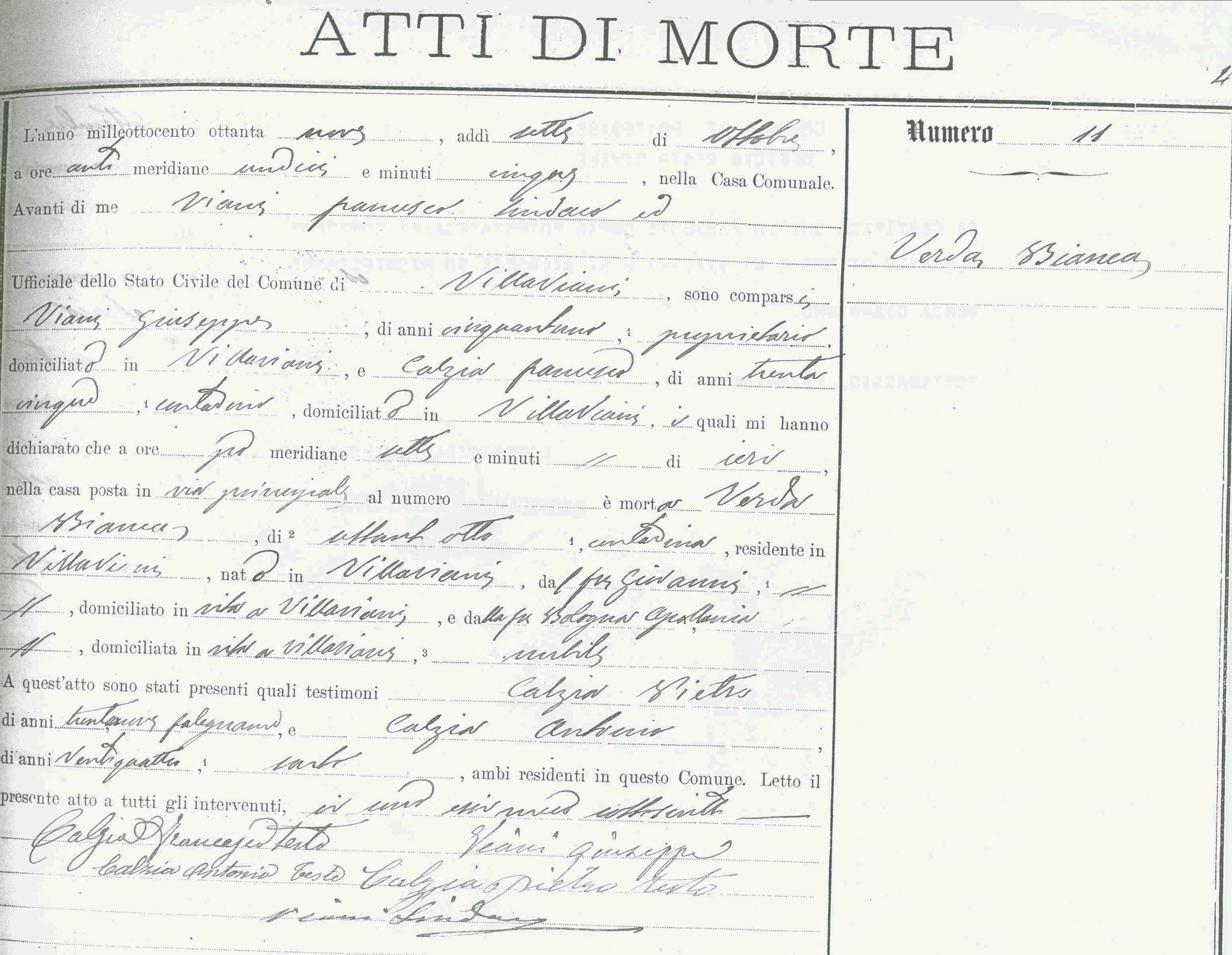 Atto n. __11___ del 7 ottobre 1889 - pag.sx ultimo atto a partire dall'alto Soggetto: Bianca Verda
